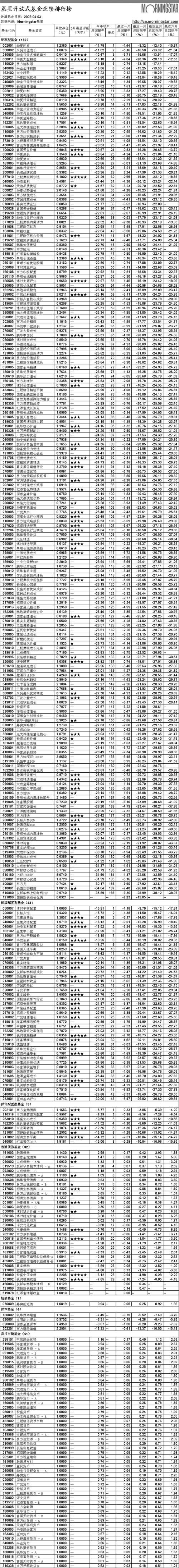 晨星開放式基金業(yè)績排行榜[2008-04-03]