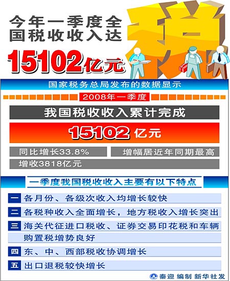 今年一季度全國稅收收入達(dá)15102億元[圖表]