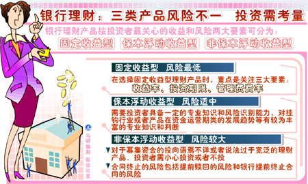銀行理財:三類產(chǎn)品風險不一 投資需考量