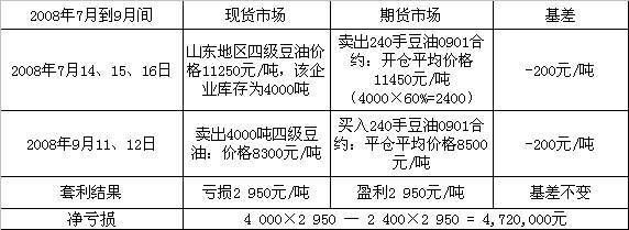 讓我們來分析發(fā)生在2008年的四個不同的套期保值實戰(zhàn)案例。 在保值虧損的案例一中,雖然廣東那家保值企業(yè)完全遵守了傳統(tǒng)的套期保值原則,但因為企業(yè)對大勢判斷失誤,在現(xiàn)貨價格相對于目標保值期貨價格已經(jīng)產(chǎn)生較大價差的情況下,依舊采用1:1的保值方案,結(jié)果造成沒有對所有現(xiàn)貨進行有效保護。 案例二中的天津某企業(yè)則表現(xiàn)出對大勢把握比較準確的操作思路。當時,油脂價格處于上升勢頭中,現(xiàn)貨銷售比較容易,該天津油脂企業(yè)在期市上建立了小于現(xiàn)貨庫存數(shù)量的空頭頭寸數(shù)量。由于沒有建立完全數(shù)量的保值,企業(yè)在期市的虧損小于現(xiàn)貨市場上的盈利,從最終的保值效果看,企業(yè)實現(xiàn)了盈利。 在案例三中,山東某企業(yè)雖然對大勢把握準確,已經(jīng)認定了熊市的到來,但因為他們僅對60%的庫存數(shù)進行了期市上的空頭保值,再加上當時處在價格加速下行時期,現(xiàn)貨銷售比較困難,使得另外40%的庫存處于敞口風險當中,期市上的空頭頭寸只給企業(yè)規(guī)避了部分庫存風險,最終企業(yè)出現(xiàn)了不應有的虧損。 在避險成功的案例四中,河北的這家企業(yè)不僅看準了走熊的大勢,而且在期市上建立了大于現(xiàn)貨庫存的空頭頭寸,企業(yè)在當時市價銷售庫存較為困難的情況下,為了能在兩個市場同時進行交易了結(jié),以低于市價將庫存逐步消化,結(jié)局比較完美,除去兩市盈虧相抵的部分,企業(yè)在期市上建立的超額部分保值頭寸給他們帶來了超額收益。