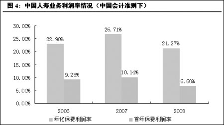 中信建投證券研究發(fā)展部金融服務(wù)業(yè)分析師魏濤分析說,2008年中國人壽取得了高達(dá)50.34%的壽險(xiǎn)保費(fèi)增長率,但標(biāo)準(zhǔn)保費(fèi)利潤率由26.7%下降為21%,而首年保費(fèi)利潤率則由10%下降為6.6%。從香港準(zhǔn)則下保費(fèi)數(shù)據(jù)來看,期繳占比很低的總投資型合同收入增長率為101%,遠(yuǎn)高于總保費(fèi)收入增速23.1%。 他認(rèn)為,這是公司在競爭情勢下,對規(guī)模和效益作出抉擇后的戰(zhàn)略選擇。 中國人壽保險(xiǎn)股份有限公司總裁萬峰在3月26日的業(yè)績發(fā)布會(huì)上強(qiáng)調(diào),中國人壽今年要進(jìn)一步調(diào)整業(yè)務(wù)結(jié)構(gòu),加大長期期交型、保障型產(chǎn)品發(fā)展力度,實(shí)行“轉(zhuǎn)型增效”。從今年一季度情況看,轉(zhuǎn)型效果非常明顯,5年以上、10年以上期交業(yè)務(wù)增長強(qiáng)勁。