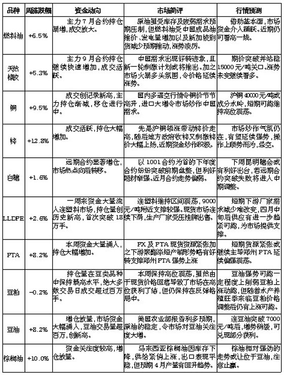 期貨市場主力品種周評(4月3日—9日)