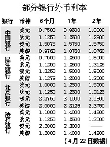 在所有的理財方式中,儲蓄存款被認為是最為安全、保守的一種。不少人誤以為各個銀行的外幣存款利率是一致的,其實不然,外幣存款利率在不同的銀行間是有差異的。 近期,由于國際金融市場利率持續(xù)下降,不少銀行下調(diào)了小額(300萬美元以下)外幣存款的利率。例如,4月11日,工商銀行調(diào)整境內(nèi)美元、港幣、英鎊、加元小額存款利率;建設(shè)銀行4月10日起調(diào)整境內(nèi)美元存款利率;此外,農(nóng)行于3月26日下調(diào)了英鎊、澳元、加元、新加坡元、瑞士法郎5種外幣存款利率;中國銀行于3月25日下調(diào)英鎊、澳元的外幣存款利率。 記者了解到,利率下調(diào)后,在某些幣種上,各銀行間的存款利率差異仍然很大。以美元為例,有的銀行二年期的存款利率為1.00%,有的為1.50%,而北京銀行的二年期美元存款利率則為1.52%。澳元方面,差異就更為明顯,北京銀行一年期的澳元存款利率為3.10%,遠遠高于其他銀行的1.50%。英鎊方面,北京銀行和深圳發(fā)展銀行的一年期英鎊存款利率為2.3125%,也高于1.25%左右的平均利率水平。