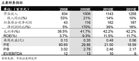 元,按照轉(zhuǎn)增后總股本(10轉(zhuǎn)增3)攤薄每股收益0.05元。對比公司2008和2009年的1季度財報,差異較大的會計科目在于三費(fèi),2009年1季度公司銷售費(fèi)用和管理費(fèi)用同比分別增長484.06%和87.02%,達(dá)到1789萬元和2520萬元。財務(wù)費(fèi)用同比增長157.33%達(dá)到1140萬元。該三項(xiàng)費(fèi)用合計同比增加3352萬元,使凈利潤同比減少約3000萬元,造成2009年1季度公司收入穩(wěn)步增長而凈利潤同比大幅下降。 值得肯定的一點(diǎn)是,2009年一季度凈利潤基本上都是由主營業(yè)務(wù)貢獻(xiàn),在不發(fā)生2008年4季度大規(guī)模非經(jīng)常性損失的前提下,有線網(wǎng)絡(luò)業(yè)務(wù)的穩(wěn)定性特點(diǎn)是公司未來收入和盈利的保障。公司計劃2009年實(shí)現(xiàn)營業(yè)收入9億元、凈利潤7000萬元,1季度已經(jīng)完成收入和凈利潤指標(biāo)的24.69%和32.41%。 國泰君安研究所表示,如果以1季度業(yè)績?yōu)樗{(lán)本預(yù)測,則公司全年業(yè)績很有可能超預(yù)算。但鑒于公司連續(xù)兩年低于預(yù)期的歷史,仍然維持2009-2011年全面攤薄每股收益分別為0.17元、0.21元、0.25元的盈利預(yù)測。對應(yīng)當(dāng)前股價的市盈率分別為53.6倍、44.2倍、36.3倍,對應(yīng)除權(quán)后股價對應(yīng)市盈率分別為41.3倍、34