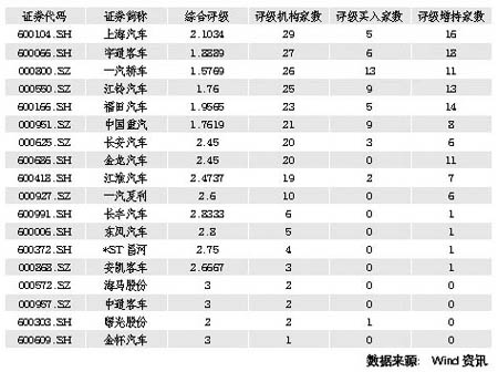天相投顧的報告也表示,在行業(yè)投資機會上,2009年汽車行業(yè)的三大投資主題是新能源汽車、節(jié)能減排(老舊汽車報廢更新屬于節(jié)能減排)和汽車下鄉(xiāng);維持汽車及配件行業(yè)的增持投資評級。考慮到重卡行業(yè)可能進一步出臺刺激政策,持續(xù)關注中國重汽(買入)和濰柴動力(增持)。此外,給予增持評級的還有宇通客車、上海汽車、福田汽車和長安汽車等。