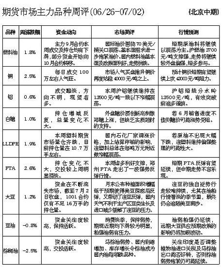 期貨市場主力品種周評(06/26-07/02)