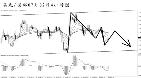 ▲美元兌瑞郎最近一個月的盤整在日線圖剛好形成了一個旗形下跌中繼雛形,后市匯價再創(chuàng)新低的希望很大。關(guān)注下方1.0650到1.0590一線的支撐作用,雖然短線的動能仍在交替,但仍將以下行為主基調(diào)。