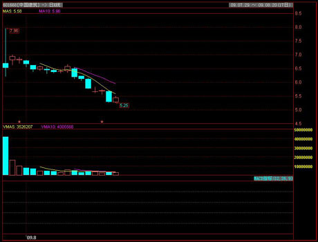 7月29日,中國建筑掛牌上市。由于其發(fā)行市盈率高達(dá)51.29倍,上市首日無人敢炒,當(dāng)日收盤漲幅只有56%。中國建筑上市當(dāng)天,大盤暴跌5%,如此的跌幅不僅近期罕見,更是1664點反彈啟動以來的單日最大跌幅。在8月12日中國建筑計入指數(shù)這一天,其還帶領(lǐng)滬指向下破位30日生命線,市場的恐慌情緒再度彌漫。