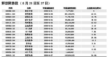 限售股解禁時(shí)間表