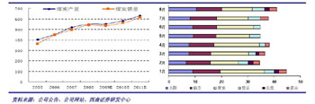 公司煤炭總產(chǎn)銷量變化(單位:萬噸)主要礦井月度生產(chǎn)情況(單位:萬噸) |
