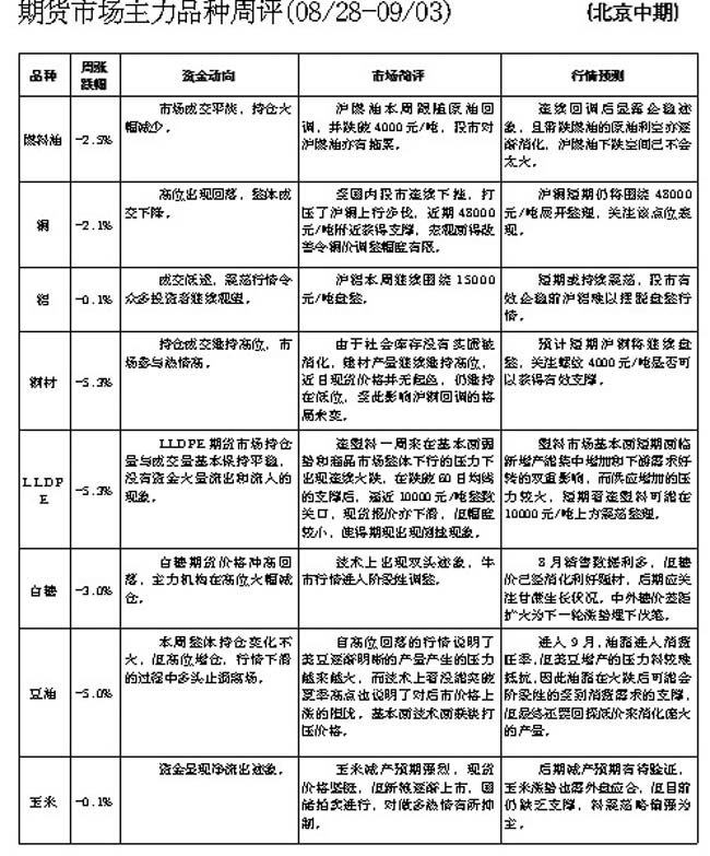 期貨市場(chǎng)主力品種周評(píng)[08.28—09.03]