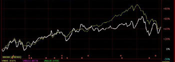 三特索道與滬深300比較圖 |