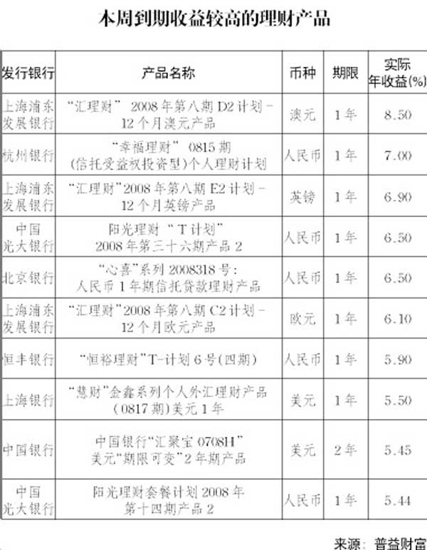 本周到期收益較高的理財(cái)產(chǎn)品[表]