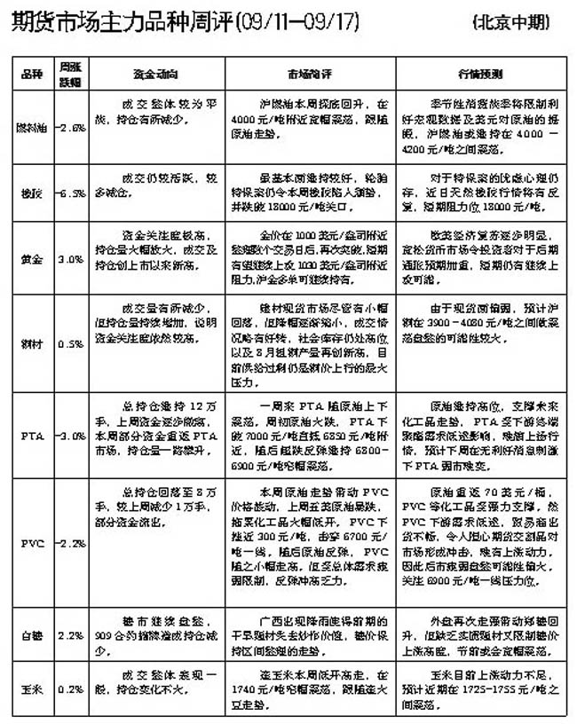 期貨市場主力品種周評[09.11-09.17]