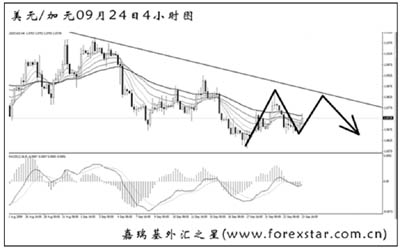 ▲美元兌加元4小時(shí)圖震蕩節(jié)奏混亂,入場(chǎng)操作有一定難度。但方向上仍以看空為主,重點(diǎn)關(guān)注趨勢(shì)線的阻力1.0850,預(yù)計(jì)美加將在此位置遇阻回落,再創(chuàng)新低。
