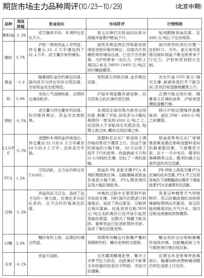 期貨市場(chǎng)主力品種周評(píng)[10.23——10.29]