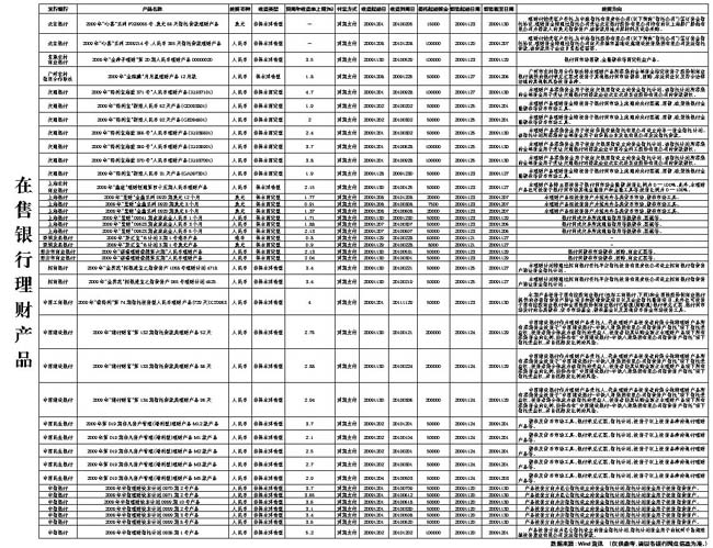 在售銀行理財(cái)產(chǎn)品[圖表]