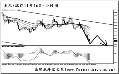 ▲美元兌瑞郎自去年4月份以來價格第一次觸及1.0000的整數(shù)關(guān)卡下方,匯價沿通道完好下行。目前需觀察此次跌破的有效性,距離0.9615的支撐越近,做空的風(fēng)險就越高。道氏理論顯著高點阻力在較遠(yuǎn)的1.0335,升破前均以做空為主。