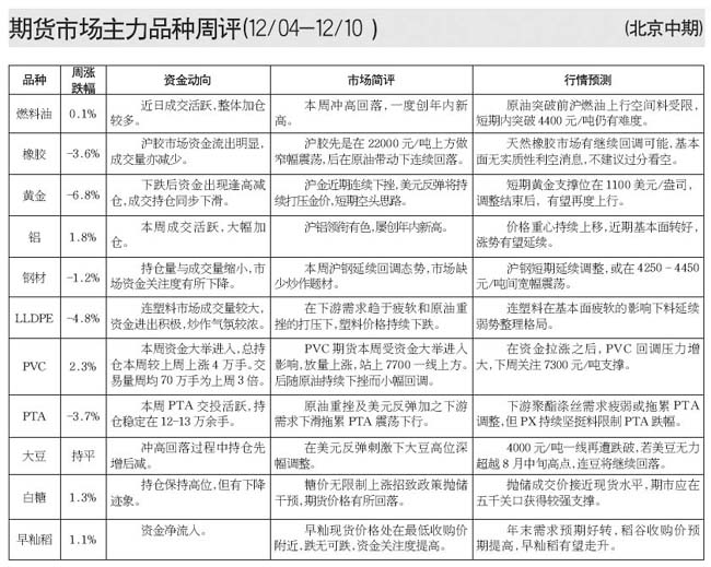 期貨市場(chǎng)主力品種周評(píng)[12.04-12.10]