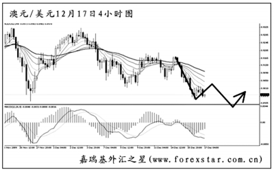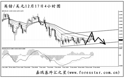D的底背離信號,但圖中的下降趨勢線起到了良好的壓制作用。后市等待歐元小幅回調(diào)后繼續(xù)做空的思路不變。