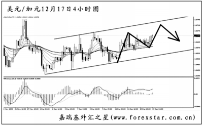 ▲美元兌加元將日線圖下降趨勢線升破之后緩步上行,短線形成一個(gè)震蕩通道。從4小時(shí)圖上看,美加持續(xù)運(yùn)行在1.0400到1.0750的區(qū)間內(nèi)部,只有突破一方才可以展開下一波大行情。預(yù)計(jì)匯價(jià)將首先向通道上沿挺進(jìn),但欲順利升破還需費(fèi)一番周折。 |