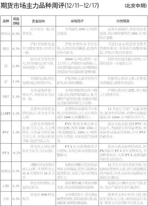 期貨市場主力品種周評(píng)[12.11-12.17]