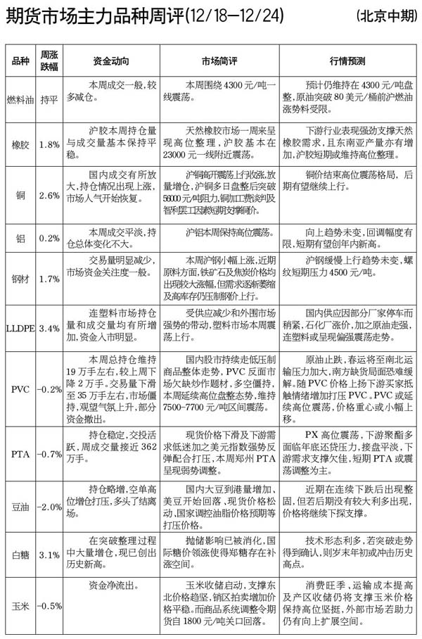 期貨市場(chǎng)主力品種周評(píng)[12.18-12.24]
