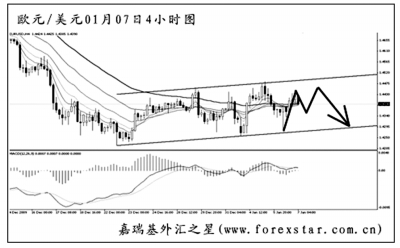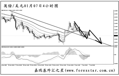 ▲英鎊兌美元將下降趨勢(shì)線升破后未能加速上行,目前在對(duì)趨勢(shì)線發(fā)生回抽。從日線圖上看,英鎊此波下跌的目標(biāo)仍在1.5700一線,尚有一定的空間。圖中的MACD處于空頭動(dòng)能充盈階段,預(yù)計(jì)英鎊小幅回調(diào)后再度創(chuàng)出新低的概率較大。