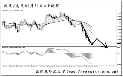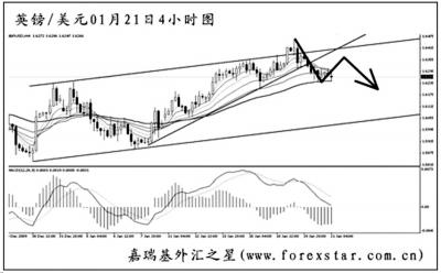 ▲歐元兌美元短線加速下行,下跌力度迅猛。匯價下方的強(qiáng)支撐在去年6月中旬的低點1.3745,此位置為此波歐元下跌的“終極”目標(biāo)。圖中均線系統(tǒng)空頭排列,主客觀方向均下看。歐元有向上回抽1.4215一線的風(fēng)險,但看空的思路不變。