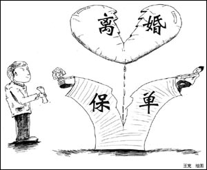 評析:根據(jù)《中華人民共和國婚姻法》第17條規(guī)定,夫妻在婚姻關(guān)系存續(xù)期間所得的財產(chǎn)歸夫妻共同所有,夫妻對共同所有的財產(chǎn),有平等的處理權(quán)。 離婚時候分割保單,其實主要是分割保單的現(xiàn)金價值,在繳納多年的保險金后,養(yǎng)老保險保單的價值=保險金+保險公司返還的投資收益,所以分割保單相當于分割保單的現(xiàn)金價值。 如果繳納保險的保費是夫妻共同財產(chǎn)里面支出的,那么離婚時候可以分割該財產(chǎn),分割方式有兩種: 一、退保后分割現(xiàn)金。 缺點:退保時候,保險公司會扣除一部分費用,特別是對于投保時間比較短的保險,退保得到的現(xiàn)金還未必有繳納的保費多,對于夫妻雙方都是個損失。 二、變更投保人,轉(zhuǎn)讓保單給被保險人。 如果夫妻一方愿意繼續(xù)保留自己的人壽保險,可采用這種方法。 根據(jù)《保險法》的規(guī)定,投保人必須和被保險人之間有保險利益,由于夫妻離婚后身份關(guān)系的消失,使得保險利益不存在,夫妻離婚后不能再為對方投保,雙方可以到保險公司變更投保人,把保險單轉(zhuǎn)讓給被保險的夫妻一方。轉(zhuǎn)讓后,被保險人將人壽保險的現(xiàn)金價值的50%支付給另外一方。 如果投保人和被保險人為夫妻中同一人的,雙方不需要到保險公司變更投保人,但是一方有權(quán)要求另一方補給自己現(xiàn)金價值的50%或者在其他的財產(chǎn)分割中拿回相當于50%保單現(xiàn)金價值的財產(chǎn)。 如屬于用夫妻共同財產(chǎn)為子女購買的,在不退保的情況下,屬于人壽保險中死亡保險的,不退保可以由獲得撫養(yǎng)子女撫養(yǎng)權(quán)的一方將保單現(xiàn)金價值的50%補償給原配偶,將受益人變更為直接撫養(yǎng)子女的一方。 屬于人壽保險中的生存保險的,生存保險金受益人只能是被保險人本人,也就是子女本人,這種情況下,父母為子女支付的保險費應當認為是父母對子女的贈與,根據(jù)合同法對贈與合同的規(guī)定,沒有法定的情況不能撤。 |