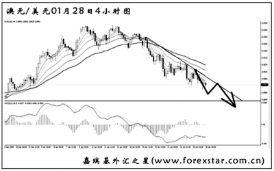 ▲澳元兌美元短線下跌趨勢(shì)保持良好。從日線圖上看,高位盤(pán)整時(shí)間已超過(guò)了2個(gè)月,匯價(jià)有階段性筑頂成功的可能。小時(shí)圖出現(xiàn)了持續(xù)的