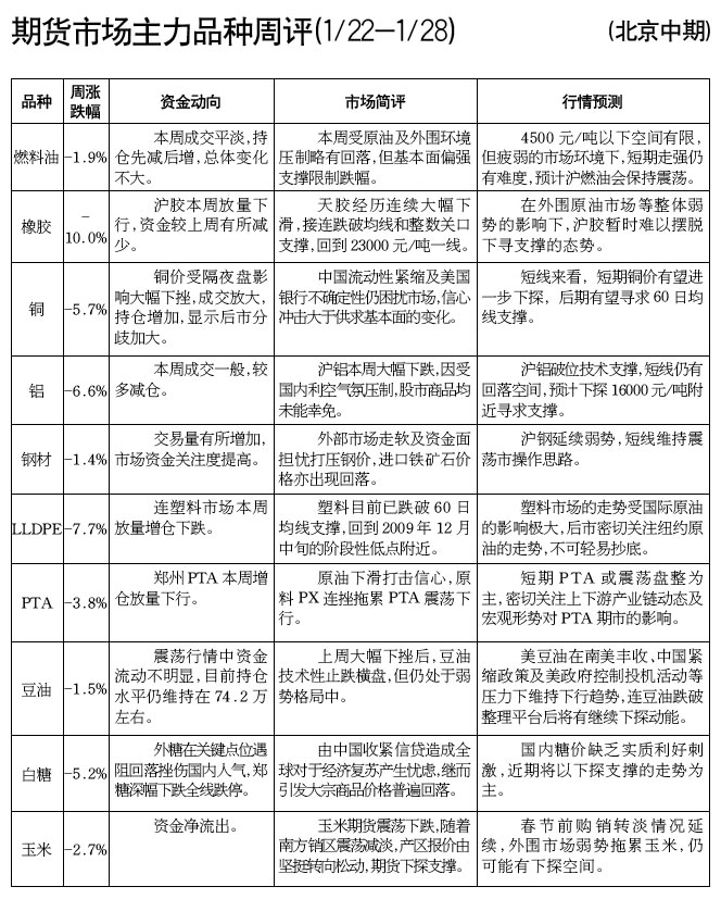 期貨市場主力品種周評[01.22-01.28]