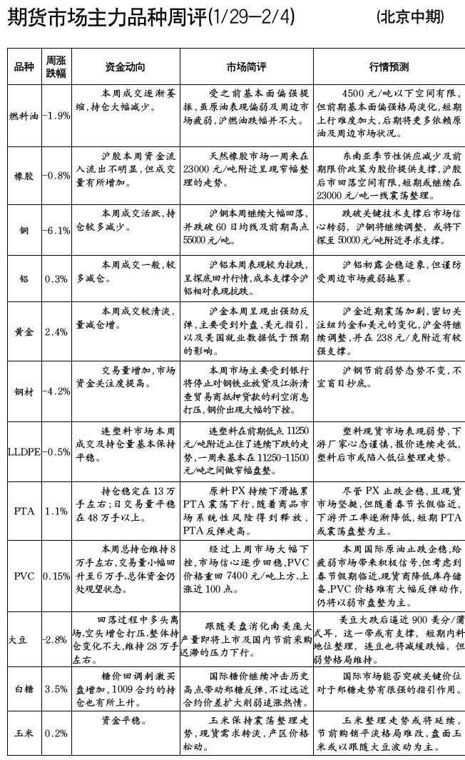 期貨市場(chǎng)主力品種周評(píng)[01.29-02.04]