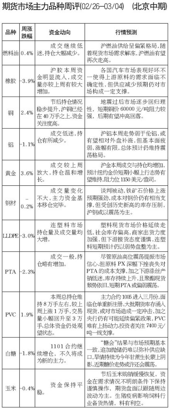 期貨市場主力品種周評[02.26-03.04]