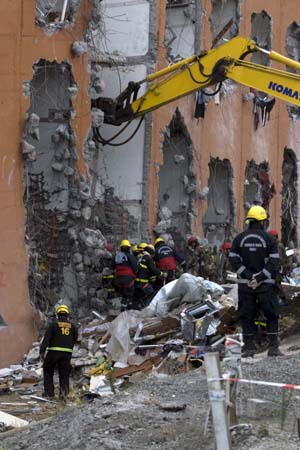 國外成熟的地震保險(xiǎn)體系中,再保險(xiǎn)公司和保險(xiǎn)公司可以為地震災(zāi)害買單。圖為智利地震重災(zāi)區(qū)搜救場面。新華社發(fā)(維克多·羅哈斯/攝) |