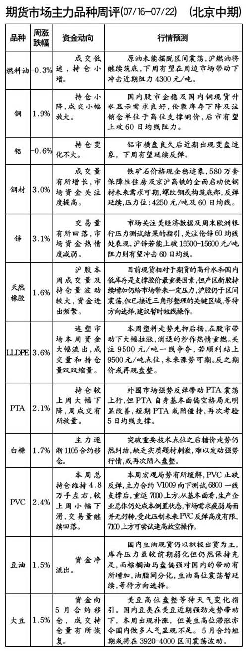 期貨市場主力品種周評[07.16-07.22]