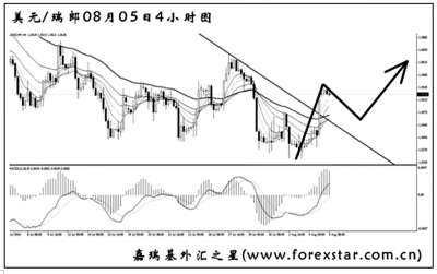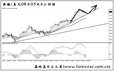 ▲美元兌瑞郎將包含MACD底背離點的上升趨勢線強力升破,預(yù)示匯價將有一波明顯的反彈行情。大級別道氏理論顯著高點阻力在1.0640,這是美元兌瑞郎這波挑戰(zhàn)的首要目標。短線如果出現(xiàn)清晰的主次節(jié)奏或中繼形態(tài),可以小倉做多,等上述阻力突破后再逐漸加大倉位。