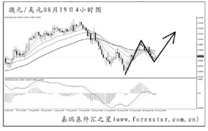 ▲澳元兌美元此前的下跌止于0.8860一線,短線重新反彈上行,并且將圖中道氏理論顯著高點阻力0.9035升破,匯價有望延續(xù)其中線的上漲勢頭。短線澳元處于回落調(diào)整中,操作上先以做空為主,直到澳元在小時圖重新轉(zhuǎn)為主上升趨勢才能考慮做多。