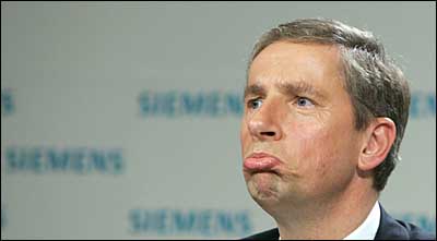 德國(guó)西門子公司首席執(zhí)行官克萊因菲爾德日前表示,他將不會(huì)與公司續(xù)簽合同。這一決定剛好是在西門子監(jiān)事會(huì)推遲討論克萊因菲爾德去留問(wèn)題不久之后作出的。西門子公司目前正陷入賄賂丑聞。此前不久,西門子監(jiān)事會(huì)主席馮必樂(lè)已經(jīng)宣布辭職。圖為4月26日克萊因菲爾德在慕尼黑發(fā)表講話。
