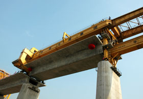 9日上午10時,建設(shè)中的國家“十五”重點建設(shè)項目、目前世界上最大的公鐵兩用橋武漢天興洲長江大橋成功開架重達900噸的“巨無霸”箱梁,創(chuàng)下了我國鐵路建設(shè)史的一項新紀(jì)錄。據(jù)介紹,900噸箱梁的預(yù)制、轉(zhuǎn)運和架設(shè),技術(shù)標(biāo)準(zhǔn)、操作精度和作業(yè)要求高,在我國鐵路建設(shè)史上是首次。