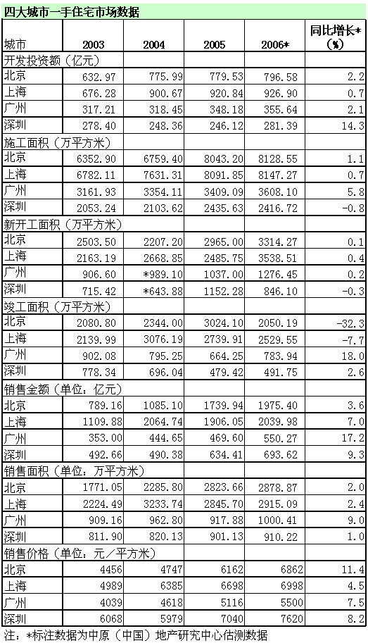 四大城市一手住宅市場數(shù)據(jù)