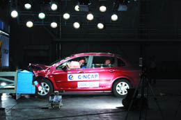 2006年8月29日,根據(jù)世界通行規(guī)則實施的中國新車安全評價體系C-NCAP在位于天津的中國汽車技術研究中心正式啟動。據(jù)了解,該中心是目前國內惟一具有獨立性的綜合性汽車科研機構,并由政府授權組織制訂中國汽車標準法規(guī)。1999年以來,該中心已累計進行過1200多車次的實車碰撞試驗,去年又投資1000萬元更新和改進了相關設施,增添了試驗假人,使碰撞試驗能力達到國外同類NCAP機構的水平。此外,清華大學汽車碰撞試驗室、一汽長春汽車研究所、二汽襄樊汽車試驗研究所等機構也具備汽車碰撞試驗能力,這些都為積極開展汽車被動安全性研究提供了硬件條件。