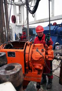 2月22日,中國石化湖北江漢油田50785鉆井隊的石油工人在維護(hù)鉆井設(shè)備。春節(jié)期間,江漢油田石油工人堅守崗位,確保工期進(jìn)程和施工安全。