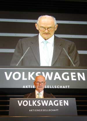 4月19日,歐洲最大汽車制造商大眾公司監(jiān)事會(huì)主席皮希在德國(guó)漢堡召開(kāi)的公司年會(huì)上講話。大眾公司18日宣布,今年第一季度,由于公司的全球銷量穩(wěn)定增長(zhǎng),其凈利潤(rùn)比去年同期翻番,達(dá)到7.4億歐元。