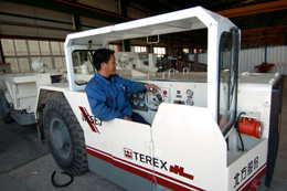 近日,中國(guó)兵器工業(yè)集團(tuán)公司所屬北方股份公司成功研制出WC5EJ井下無(wú)軌膠輪防爆工程自卸車(chē)。該車(chē)載重5噸,具有轉(zhuǎn)彎半徑小等優(yōu)點(diǎn),是一種適用于現(xiàn)代化煤礦輔助運(yùn)輸?shù)母咝阅苘?chē)輛。圖為一名工人在廠區(qū)對(duì)井下無(wú)軌膠輪防爆工程自卸車(chē)進(jìn)行試操作。 |