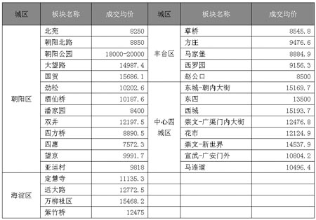 上海市各區(qū)域、各板塊均價(jià)(單位:元/平方米)