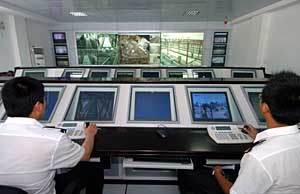 | 海關(guān)工作人員在大連大窯灣保稅港區(qū)海關(guān)監(jiān)控中心調(diào)試設(shè)備。本報記者