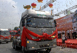 “51年前的7月,第一輛解放牌汽車的下線,結(jié)束了中國不能造車的歷史。今天,一汽通過解放J6世界級重卡向世人宣告,一汽已經(jīng)具備了世界水平的卡車制造能力!痹诋(dāng)天舉行的發(fā)布儀式上,一汽集團(tuán)總經(jīng)理竺延風(fēng)驕傲地宣布。 作為中國商用車領(lǐng)域的“長子”和生產(chǎn)規(guī)模最大的品牌,解放汽車的發(fā)展?jié)饪s了中國商用車發(fā)展的歷史。從第一代的CA10到第六代的解放J6,解放汽車走過了半個世紀(jì)的風(fēng)云。每一次更新?lián)Q代,在商用車領(lǐng)域都具有劃時代的意義。 解放汽車也承載著一汽的光榮與夢想。竺延風(fēng)說,“解放”是一汽的根,根深才能葉茂。對于解放汽車而言,它肩上擔(dān)著的是一汽集團(tuán)實(shí)現(xiàn)民族自主品牌振興的希望。 作為一汽的“根”,54年來一汽解放堅(jiān)決走自主發(fā)展的道路,第六代解放車型J6平臺的成就,將成為國內(nèi)汽車企業(yè)自主研發(fā)的一個標(biāo)桿。 早在2000年2月,一汽集團(tuán)公司在討論“十五”產(chǎn)品規(guī)劃時就提出了中、重型卡車下一代產(chǎn)品全系列同步開發(fā)的構(gòu)想。在國際汽車巨頭紛紛搶灘中國市場的背景下,一汽拒絕了國外跨國公司放棄“解放”自主品牌的合作條件,決定從自主創(chuàng)新的實(shí)際需要出發(fā),由具有國際整車設(shè)計(jì)及試驗(yàn)水平的技術(shù)中心開發(fā)具有完全自主知識產(chǎn)權(quán)的新一代世界級重卡產(chǎn)品——解放J6。 解放J6在設(shè)計(jì)之初就提出繼承以往幾代解放重型車優(yōu)點(diǎn),瞄準(zhǔn)歐洲先進(jìn)技術(shù)標(biāo)準(zhǔn),融合全球先進(jìn)技術(shù)。產(chǎn)品從研制到下線歷時六年,共計(jì)取得創(chuàng)新技術(shù)300多項(xiàng),申報國家專利197項(xiàng)。其中,為解放J6重卡配置的奧霸13L柴油發(fā)動機(jī)是一汽自主研發(fā)的重大成果。該發(fā)動機(jī)采用共軌噴油系統(tǒng),排放性能滿足法規(guī)要求,最大功率可達(dá)460馬力,是當(dāng)今國內(nèi)功率最大、排量最大的發(fā)動機(jī)。 在下線儀式上,具有國際權(quán)威的萊茵公司車輛產(chǎn)品國際認(rèn)證部副總經(jīng)理赫斯勒宣布了解放J6的認(rèn)證結(jié)果,認(rèn)為解放J6已達(dá)到歐洲同類車型的水平,赫斯勒同時還表示一汽已經(jīng)跨入世界一流商用車行列。