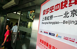 京滬航線被稱為民航的“黃金航線”,是中國最繁忙的商務(wù)航線。據(jù)民航總局統(tǒng)計,去年這條航線的旅客運輸量達(dá)418萬人次,占全民航客運量的2.98%。在京滬兩個機場之間運營的5家航空公司投入航班的總量達(dá)36班。 由于社會公眾對航空運輸?shù)囊笤絹碓礁,中國民航總局牽頭組織國航、東航、南航、上航和海航5等家公司以及相關(guān)機場共同打造出了“京滬空中快線”,以提高資源利用率,應(yīng)對鐵路提速的競爭壓力。 上海虹橋機場已設(shè)有專為快線的值機柜臺和安檢和登機口。A航站樓的35至44號柜臺以及4個移動辦票柜臺辦理登機手續(xù);安檢二區(qū)和B1、B2、B3、A7為專設(shè)安檢區(qū)和通道;還有2個專用的行李轉(zhuǎn)運盤,集中行李提取。5家公司的以相同的品牌標(biāo)識、相同的服務(wù)承諾,集中在機場的同一區(qū)域內(nèi),進(jìn)行集中統(tǒng)一運營。5家公司還有統(tǒng)一的熱線電話服務(wù)內(nèi)容、標(biāo)準(zhǔn)和流程。熱線電話除服務(wù)于本公司,也為其他參與快線運營的公司提供服務(wù)!