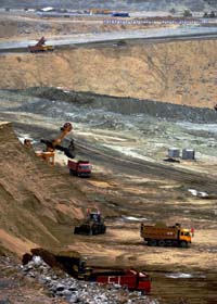 正在建設中的露天煤田。(本報資料照片) | 晉、陜、內(nèi)蒙古接壤地區(qū)是我國重要的煤炭資源寶庫。長期以來,這一地區(qū)除神華等大型骨干企業(yè)采用先進的機械化綜采技術,大部分煤炭生產(chǎn)企業(yè)普遍采用房式煤炭開采方式,采用這種落后的生產(chǎn)方式?jīng)Q定了其煤炭生產(chǎn)的低回采率,大量煤柱殘留井底成為呆滯資源,煤炭資源浪費驚人。 記者近日在鄂爾多斯市采訪了解到,當?shù)毓歉擅禾科髽I(yè)內(nèi)蒙古伊泰集團多年來組織科研人員對殘留煤柱回收技術重點攻關,現(xiàn)已取得重大突破。業(yè)界人士建議,應盡快大面積推廣此項技術,以使大量煤炭資源得到回收利用。如果這項技術盡快運用于生產(chǎn)中,可以使煤炭回采率成倍增長。